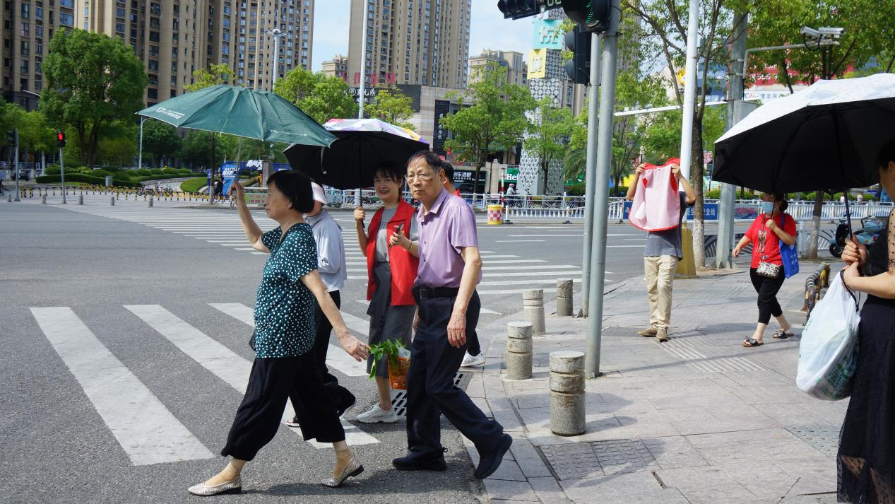 护送老人过斑马线