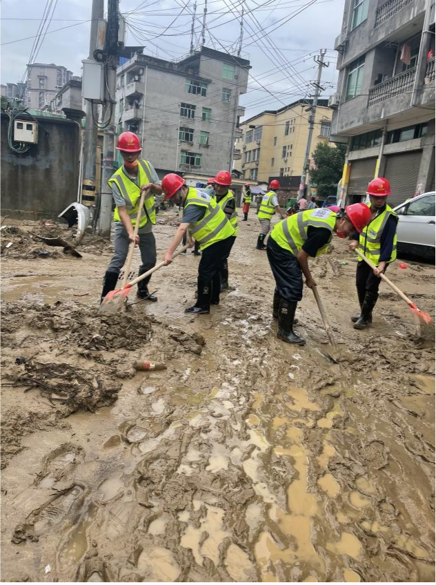 次日凌晨,,,,,918博天堂党委书记邱为海同志亲自带队,,,,,我司调动铲车、钩机等十几台设备车辆和几十名党员及志愿者火速出发松溪,,,,,在当地党委政府有序指导下,,,,,第一时间投入受灾较重的河东乡河东中心小学及附近周边片区,,,,,奋战灾区一线,,,,,抒发企业情怀。。。。。。。。